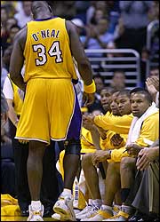 SE ACABÓ: Shaq se dirige a la banca de los Lakers, faltando varios minutos para terminar el Juego 6 frente a los Spurs. Ya la suerte estaba echada. (AP)